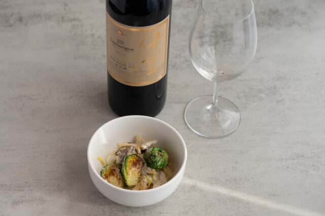 その後、両ワインの味わいに合うフレンチオーク樽に移し、暗く静かな部屋にてゆっくりと12カ月間、樽熟成させました。熟成が終わったワインは、醸造家全員でテイスティングを繰り返し、とりわけ味・香り・色の評価が高いものを選抜しブレンドしています。