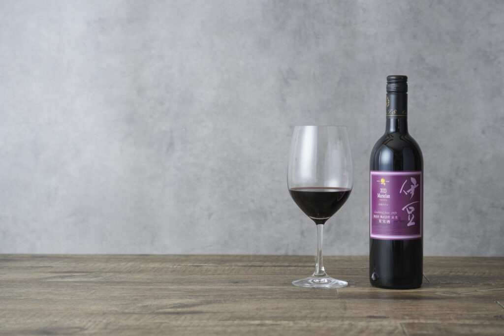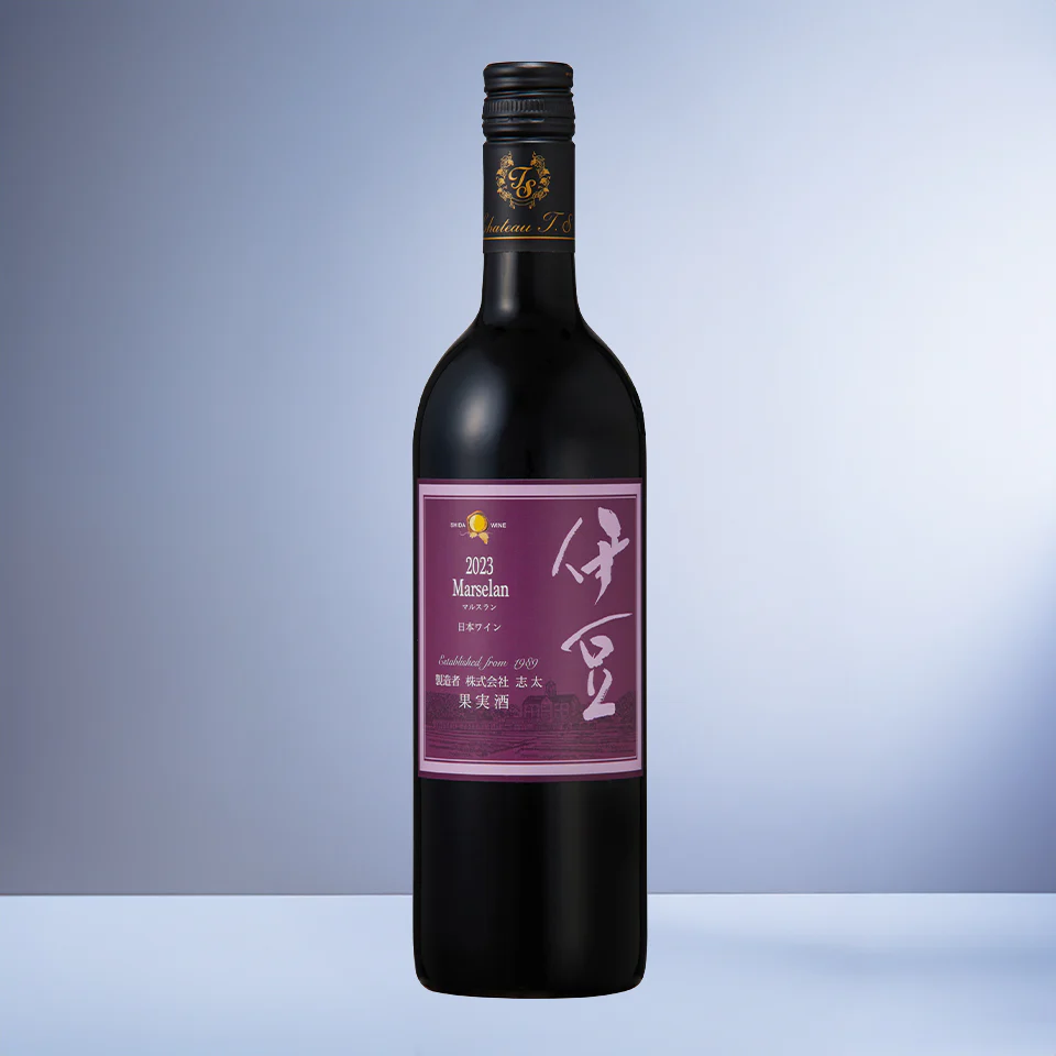 グルナッシュとカベルネ・ソーヴィニヨンの交配品種であるマルスラン100%で醸造したワインです・フルーティな香りと程よい樽香が調和しています。伊豆の太陽を浴びて実ったぶどう由来の味わいとビターな渋味が楽しめます。