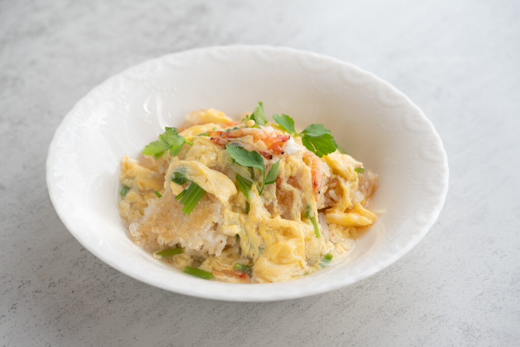 今回のペアリングレシピは、「桜えびとせりの香ばしおこげ 卵あんかけ」。鮮やかな桜えびの色彩が、まるで春をそのまま器に閉じ込めたような一品です。ぜひワインとともにお楽しみください。
