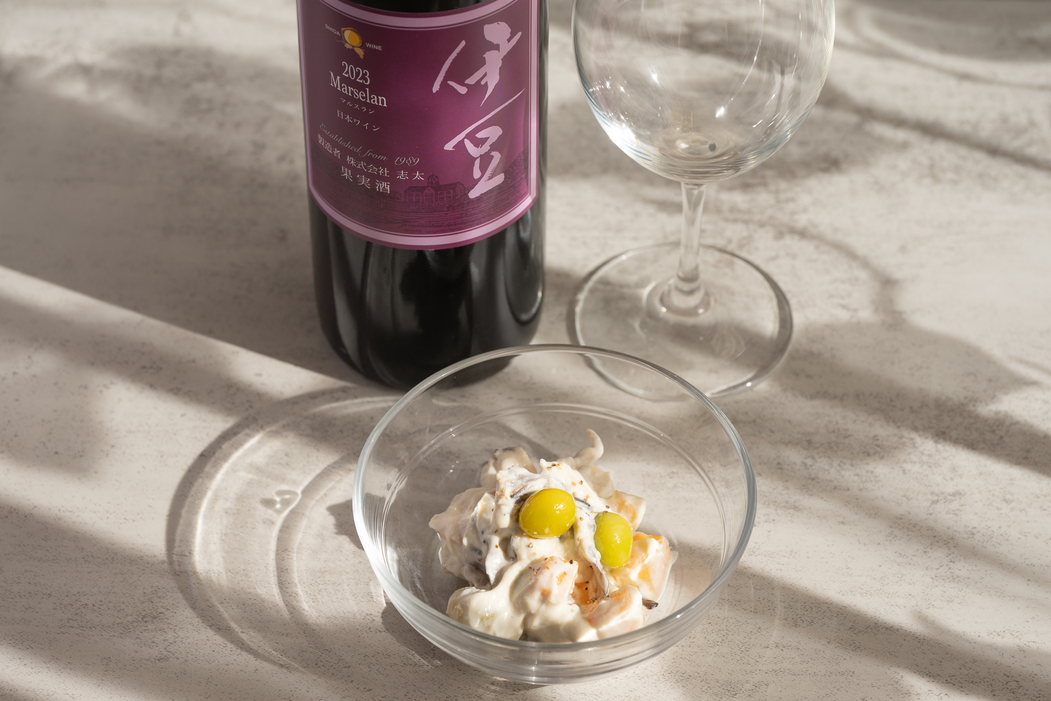 「伊豆マルスラン 2023」は、マルスラン品種のみを使って丁寧に醸したワインです。グラスに注げば濃く深いルビー色が輝き、ブラックチェリーやプラムのような黒果実の豊かな香りとともに、チョコレートを思わせる甘美なアロマが鼻腔をくすぐります。爽やかな酸味とチャーミングな風味は、多様な料理に寄り添ってくれるでしょう。程よい渋味が味わいを引き締め、飲み終えた後も心地良い余韻がゆっくりと続きます。